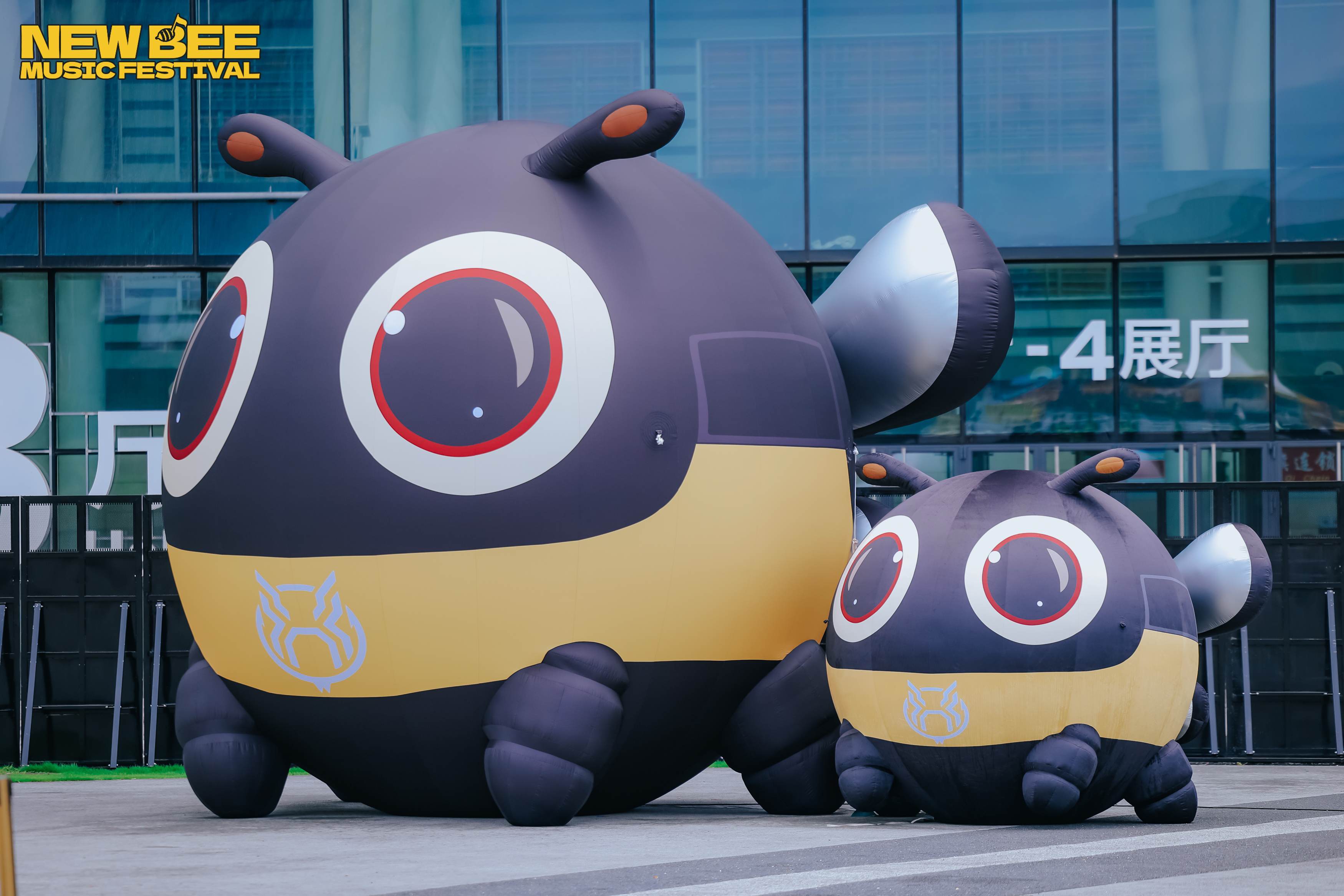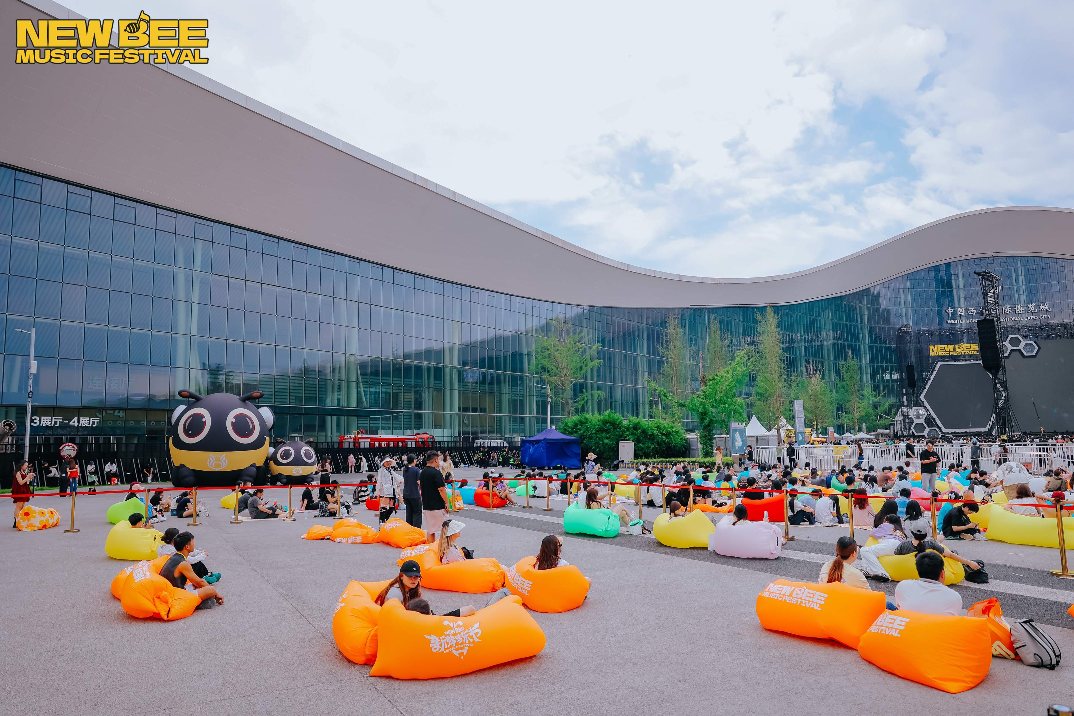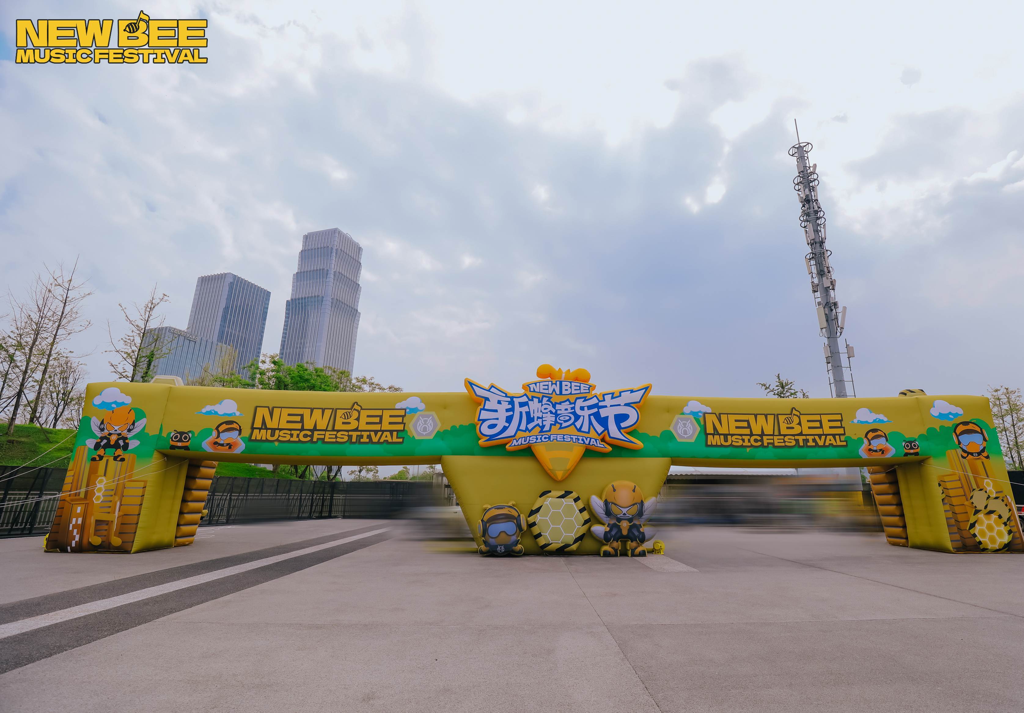 此外,本次音乐节玩法全面升级。“雨果”“埃尔”“嗡嗡”等虚拟IP“蜂格分裂”开启NewBee TV,以魔性有趣的方式为观众解读多方面安全注意事项和须知。现场设置“打工人语录”多个互动区,入场即化身“工蜂”参与剧情。随处可见的明黄色虚拟IP大型充气玩偶、重量嘉宾薛之谦主理品牌DSP的纸袋人充气玩偶,都吸引众多观众打卡。音乐节还在线发起“敢潮敢蜂”的主题穿搭活动,首创“黄黑出街”穿搭文化,鼓励观众以黑黄主题撞色造型出街。在与观众的互动环节,新蜂专属小蜜蜂、成都特色熊猫玩偶、麻将人等,不定时出没,特色大型广播体操“精神状态”引发热议,完美契合当代年轻人“发疯”文化。