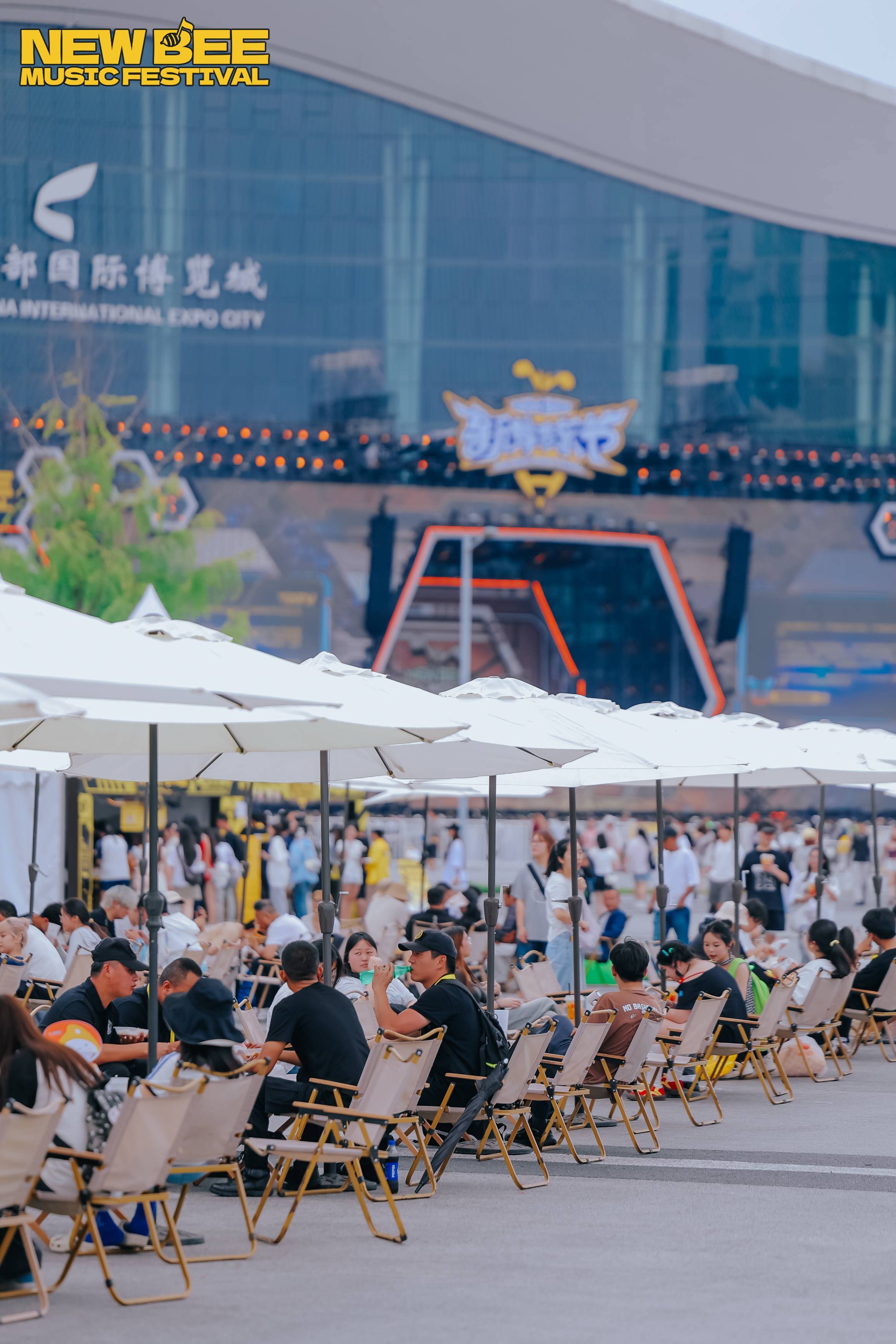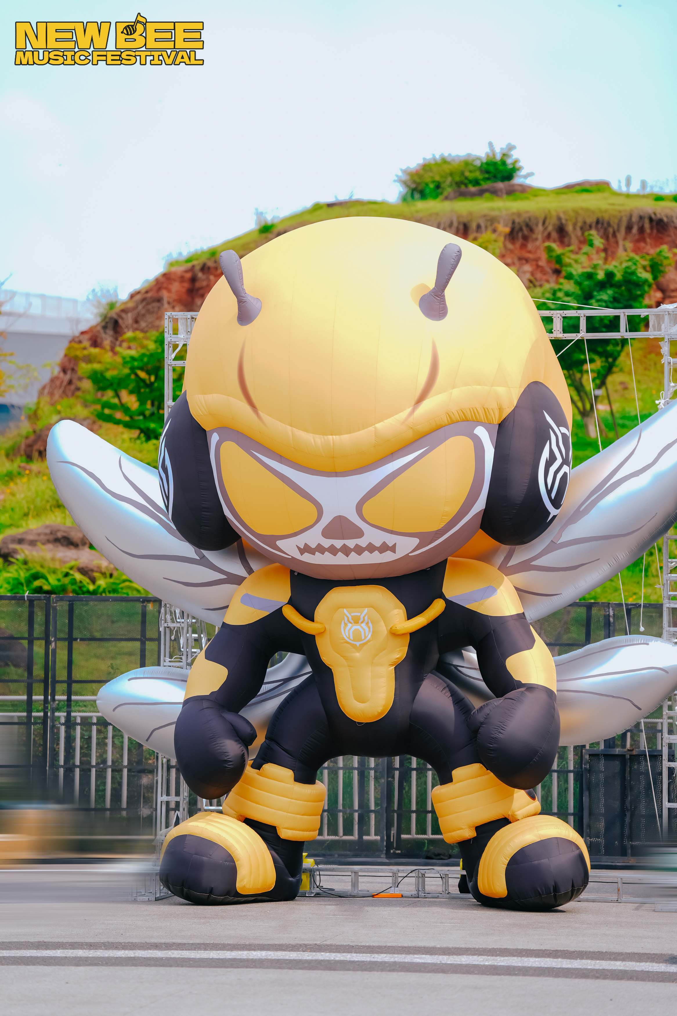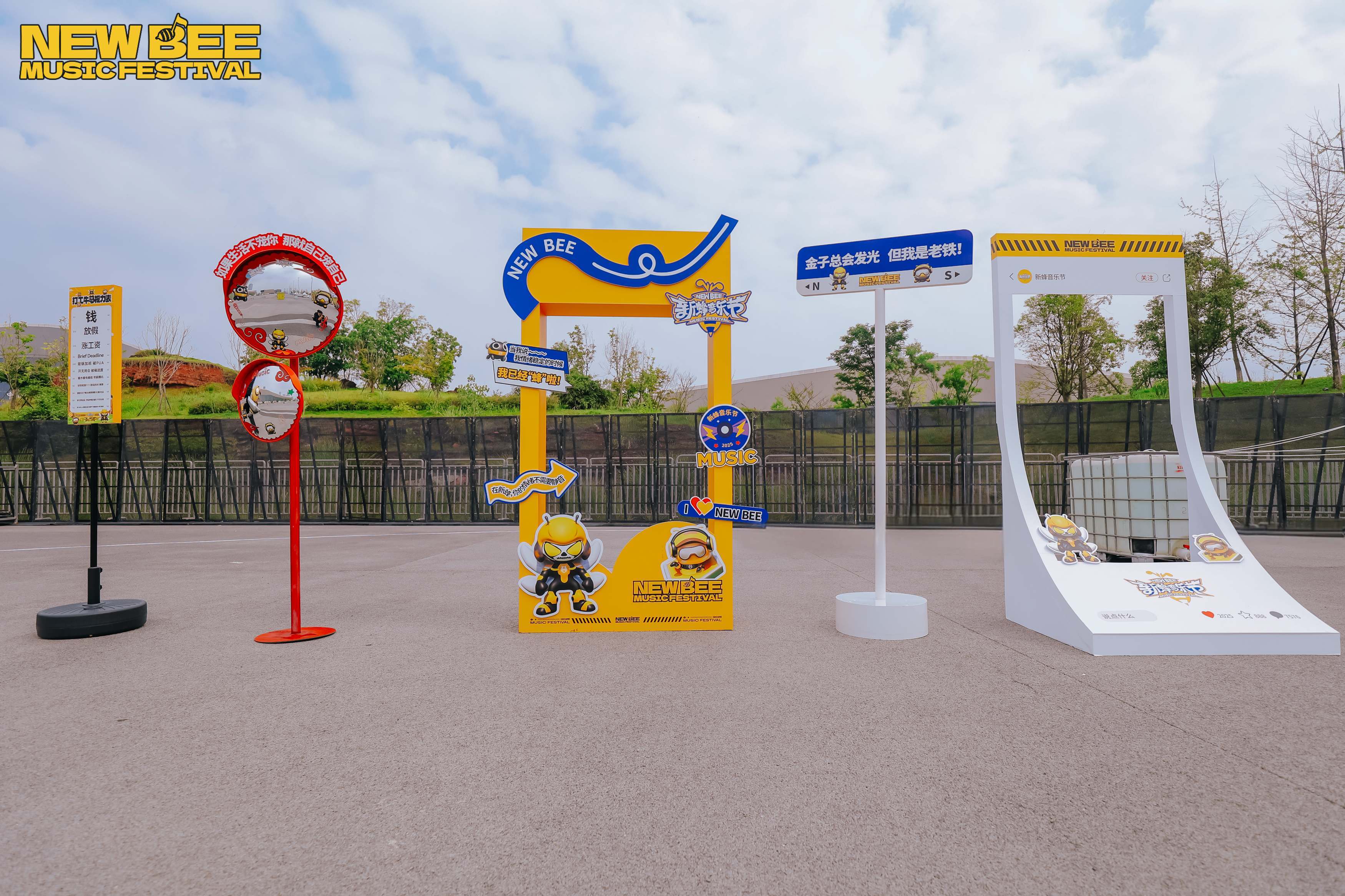 此外,本次音乐节玩法全面升级。“雨果”“埃尔”“嗡嗡”等虚拟IP“蜂格分裂”开启NewBee TV,以魔性有趣的方式为观众解读多方面安全注意事项和须知。现场设置“打工人语录”多个互动区,入场即化身“工蜂”参与剧情。随处可见的明黄色虚拟IP大型充气玩偶、重量嘉宾薛之谦主理品牌DSP的纸袋人充气玩偶,都吸引众多观众打卡。音乐节还在线发起“敢潮敢蜂”的主题穿搭活动,首创“黄黑出街”穿搭文化,鼓励观众以黑黄主题撞色造型出街。在与观众的互动环节,新蜂专属小蜜蜂、成都特色熊猫玩偶、麻将人等,不定时出没,特色大型广播体操“精神状态”引发热议,完美契合当代年轻人“发疯”文化。